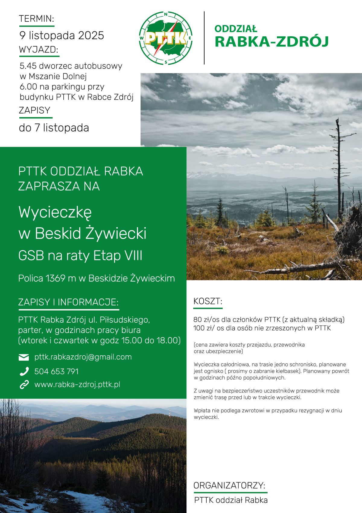 Zarząd oddziału PTTK Rabka serdecznie zaprasza na 8 Etap Głównego Szlaku Beskidzkiego.
