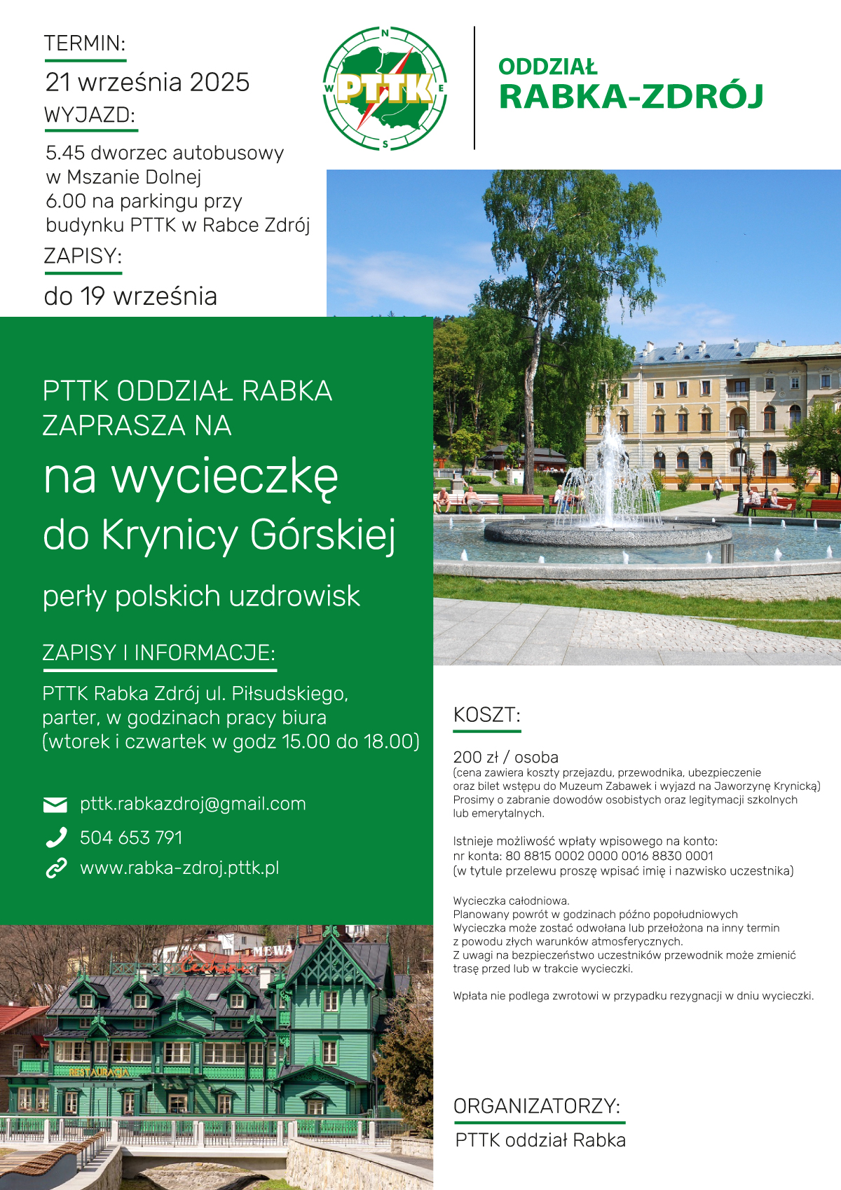 Zarząd Oddziału PTTK Rabka serdecznie zaprasza na wycieczkę do Krynicy Górskiej.
